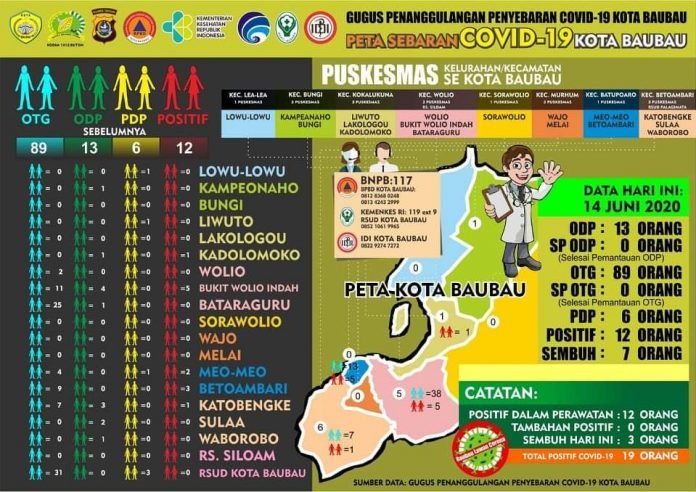 Data sebaran Covid 19 Kota Baubau per Minggu 14 Juni 2020. FOTO:IST