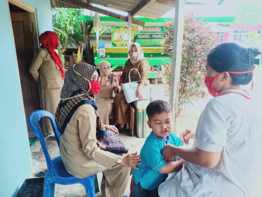 Ketua KPU Butur, Hj. sitti Rabiah Abu Hasan, Mengunjungi Anak Cacat dikediamannya.Foto Asman /Tribunbuton.com
