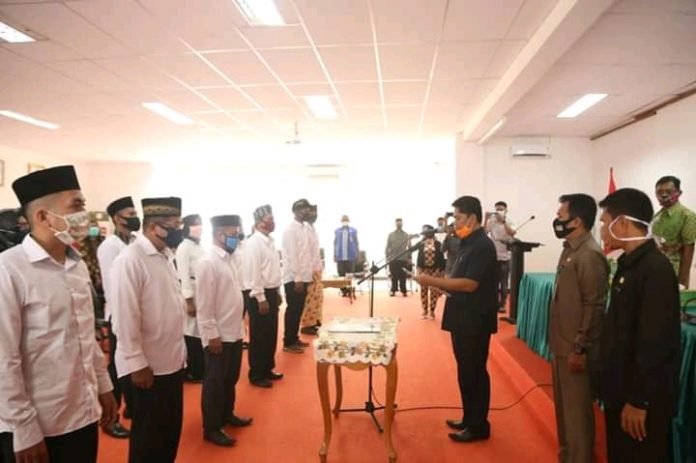 Bupati Buton La Bakry saat lantik anggota BPD. FOTO:ILW/TRIBUNBUTON.COM