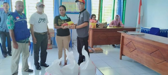 Penyerahan bantuan di Kelurahan Kadolomoko. FOTO:HERLIN/TRIBUNBUTON.COM