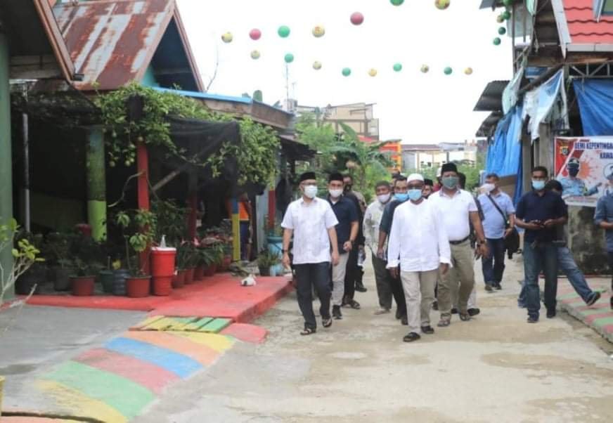 Walikota Kendari, H Sulkarnain Kadir SE ME, mengapresiasi warga RT13 RW 05 Kelurahan Lahundape, Kendari Barat. Warga berupaya membangun wilayahnya menjadi Kampung Tangguh Nusantara Berbasis Tiga Dimensi, Minggu 2Agustus 2020.