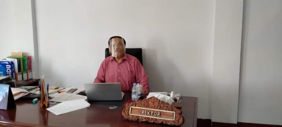 “Kami sudah menutup kampus akibat virus Covid-19 ini, hanya beberapa kantor yang buka, di biro pelayanan, untuk pembayaran dan pengambilan slip bagi yang ingin menawar mata kuliah dan mahasiswa baru”, ungkap Rektor saat ditemui ruangannya, Kamis 17 September 2020.