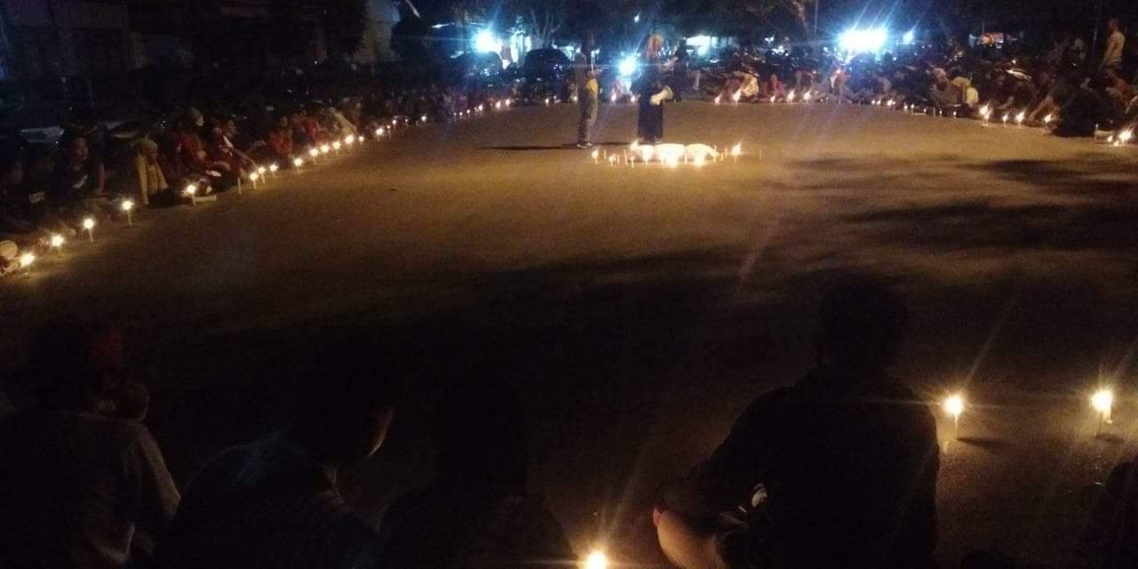 Mahasiswa se Kota Baubau membakar 1000 lilin sebagai bentuk refleksi satu tahun tewasnya Randi dan Yusuf. FOTO: IST/TRIBUNBUTON.COM