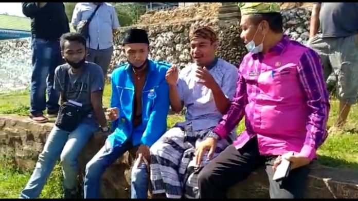 Kadis Dikbud Abdul Karim saat diskusi di lokasi revitalisasi kasulana tombi. FOTO:DOC/TRIBUNBUTON.COM