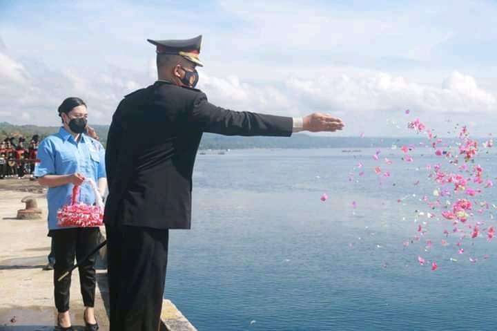 Kapolres Buton AKBP Gunarko menggelar aksi tabur bunga memperingati Hari Pahlawan 10 November, di Pelabuhan Banabungi, Kecamatan Pasarwajo, pada Selasa 10 November 2020.
