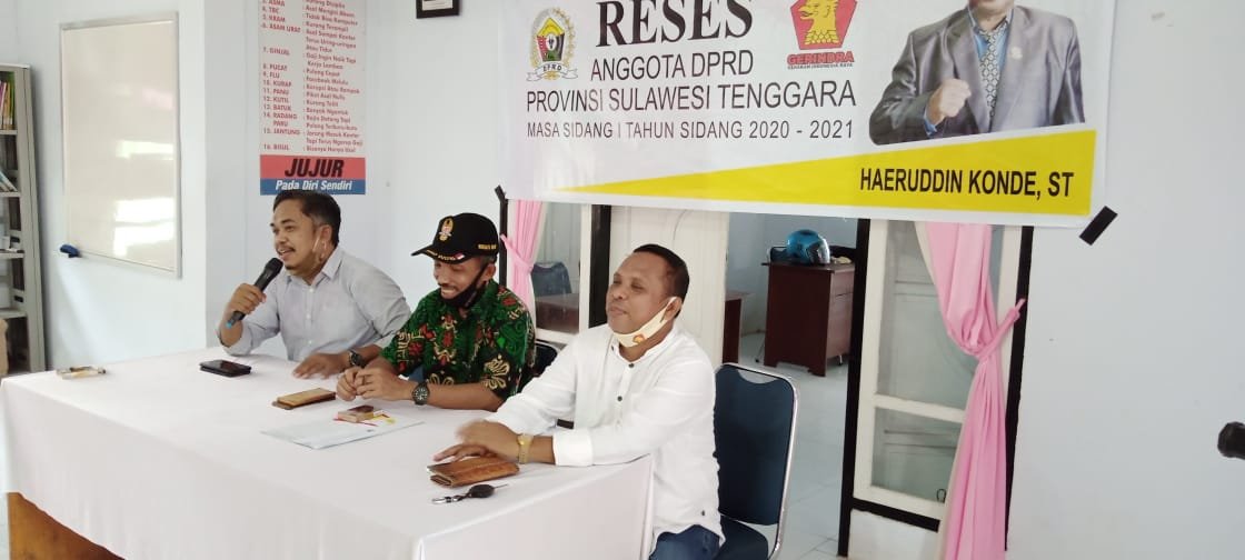 Anggota Dewan Perwakilan Rakyat Daerah (DPRD) Provinsi Sulawesi Tenggara (Sultra), Haerudin Konde, melaksanakan reses di daerah pemilihannya (dapil) Sultra 4. Meliputi Kabupaten Wakatobi, Buton, Buton Selatan, Buton Tengah dan Kota Baubau.