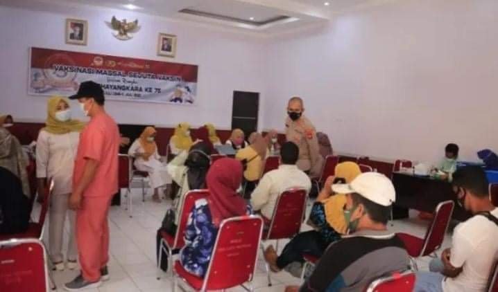 Polres Buton sukses menyelenggarakan vaksinasi massal dalam rangka memperingati HUT Bhayangkara ke-75 di Mapolres Buton, Selasa 29 Juni 2021.