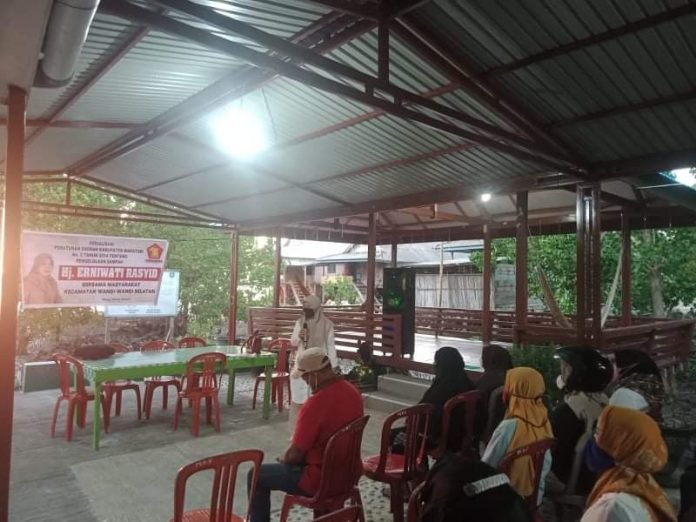 WAKATOBI, TRIBUNBUTON.COM – Anggota DPRD Wakatobi, Hj Erniawati Rasyid, gelar Sosialisasi Peraturan Daerah No 2/2014 tentang Pengelolaan Sampah, di Desa Ambeua Raya Kecamatan Kaledupa Kabupaten Wakatobi, Minggu 25 Juli 2021.