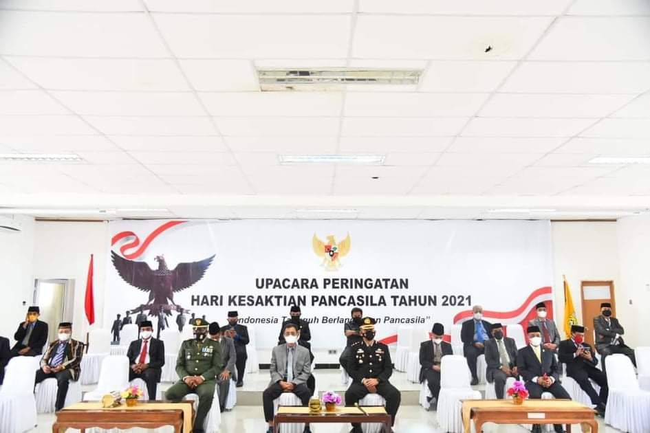 BUTON, TRIBUNBUTON.COM – Anggota Forkopimda Kabupaten Buton mengikuti Upacara Peringatan Hari Kesaktian Pancasila 1 Oktober 2021 secara virtual di Aula Kantor Bupati Buton, pagi tadi. Upacara Hari Kesaktian Pancasila tahun ini mengusung tema “Indonesia Tangguh Berlandaskan Pancasila”.