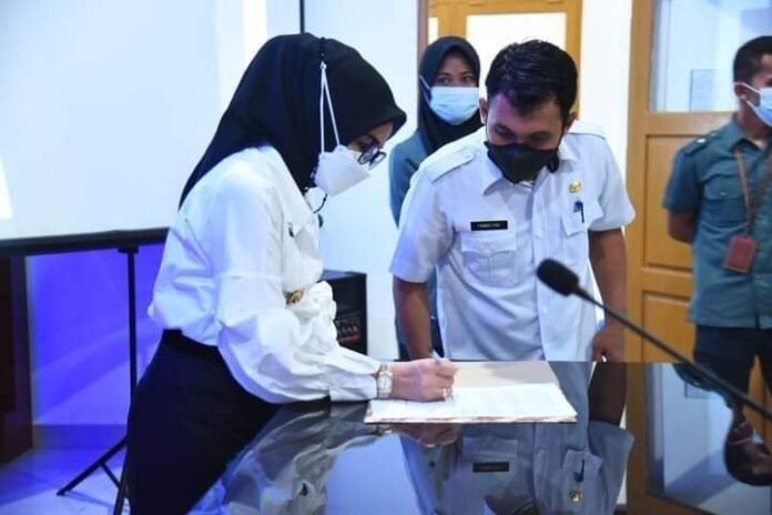 BUTON, TRIBUNBUTON.COM – Wakil Bupati Buton, Iis Eliyanti, menghadiri penandatanganan MOU dan sosialisasi aplikasi pelayanan terpadu yang diselenggarakan secara virtual melalui media zoom meeting di ruang Media Center Kantor Pengadilan Negeri (PN) Pasarwajo, Rabu, 6 Oktober 2021.