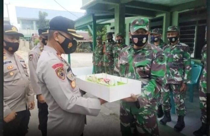 BUTON, TRIBUNBUTON.COM – Danramil 1413-02/Pasarwajo menerima kejutan dari Wakapolres Buton, dengan mengucapkan HUT Ke-76 TNI secara langsung di Markas Koramil Pasarwajo pada, Salsa 5 Oktober 2021.
