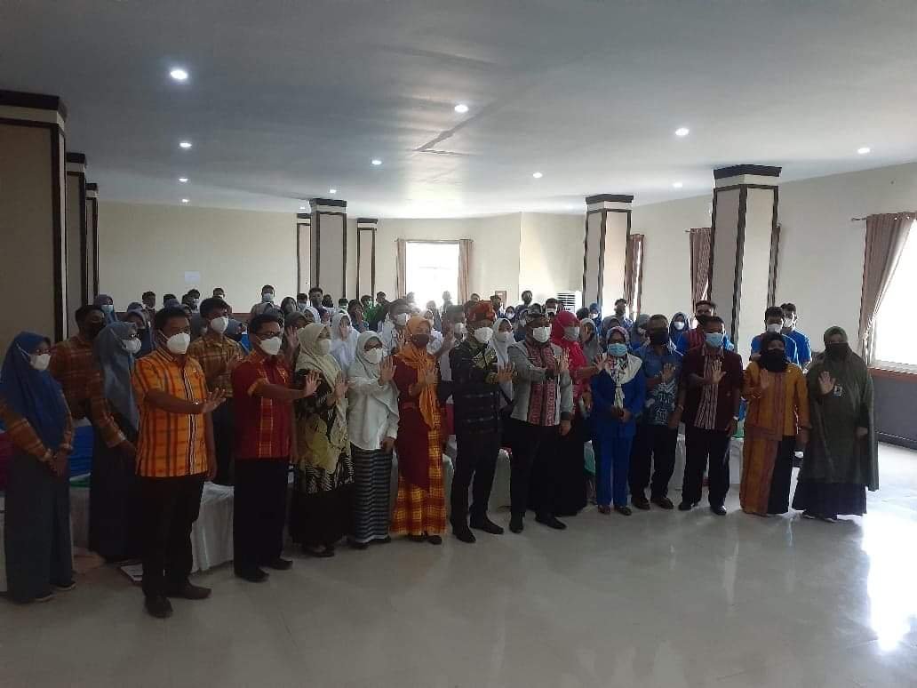 Pose bersama Sekda Kota Baubau, Roni Muhtar, pada penyuluhan dan bimbingan kerja yang diselenggarakan Disnaker Kota Baubaum. FOTO:RIFAN MAWANDILI/TRIBUNBUTON.COM