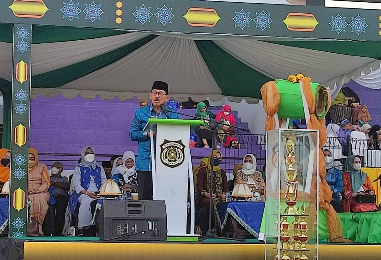 BUTUR, TRIBUNBUTON.COM – Bupati Butur, H Muhammad Ridwan Zakariah, mengimbau masyarakat untuk bersikap ramah menyambut dengan suka cita tamu daerah. Pada upacara pembukaan festival Lembaga Seni dan Qosidah Indonesia (Lasqi) berskala besar III tingkat Provinsi Sulawesi Tenggara tahun 2021 resmi digelar di Stadion Bahteramas Bukit Lamoliandu Kabupaten Buton Utara (Butur), Senin, 22 November 2021.