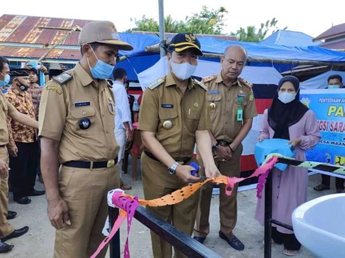 BUTON, TRIBUNBUTON. COM – Impian warga Desa Wanguwangu, Kecamatan Pasarwajo Kabupaten Buton bisa merasakan air bersih yang melimpah kini terwujud. Demi memberi pasokan air, Pemkab Buton membangun sarana dan prasarana Program Penyediaan Air Minum dan Sanitasi Berbasis Masyarakat, uji fungsi dan serah terima sarana dan prasarana replikasi itu telah dilakukan di desa setempat, Selasa, 15 Februari 2022.