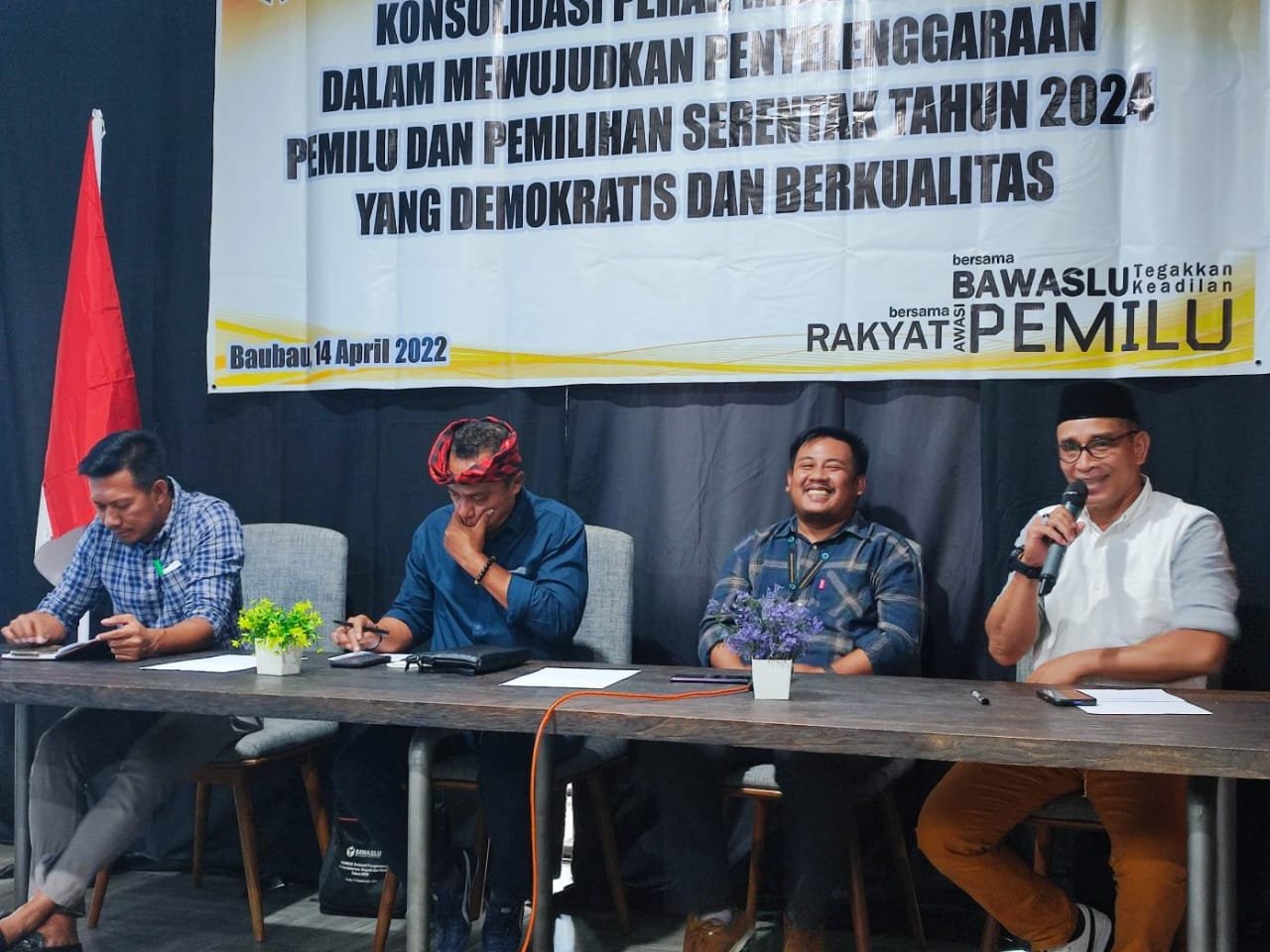 BAUBAU, TRIBUNBUTON.COM – Pemilu serentak akan berlangsung pada tahun 2024. Untuk itu Badan Pengawas Pemilu (Bawaslu) Kota Baubau bersama para insan pers, menggelar konsolidasi di salah satu RM di Kota Baubau, Kamis 14 April 2022 dengan tajuk “Konsolidasi Peran Media Massa Dalam Mewujudkan Penyelenggaraan Pemilu dan Pemilihan Serentak 2024 yang Demokratis dan Berkualitas”.