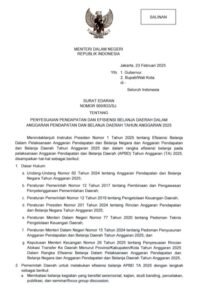 Beleid yang terbit pada 23 Februari 2025 itu merupakan tindak lanjut dari Instruksi Presiden (Inpres) Nomor 1 Tahun 2025 terkait efisiensi belanja dalam Anggaran Pendapatan dan Belanja Negara (APBN) dan APBD TA 2025.