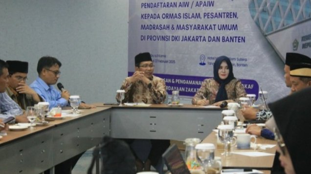 JAKARTA, TRIBUNBUTON.COM — Kementerian Agraria dan Tata Ruang/Badan Pertanahan Nasional (ATR/BPN) dan Kementerian Agama (Kemenag) menggelar sosialisasi bersama pendaftaran Akta Ikrar Wakaf (AIW) dan Akta Pengganti AIW (APAIW) di Tangerang Selatan, Rabu 26 Februari 2025.