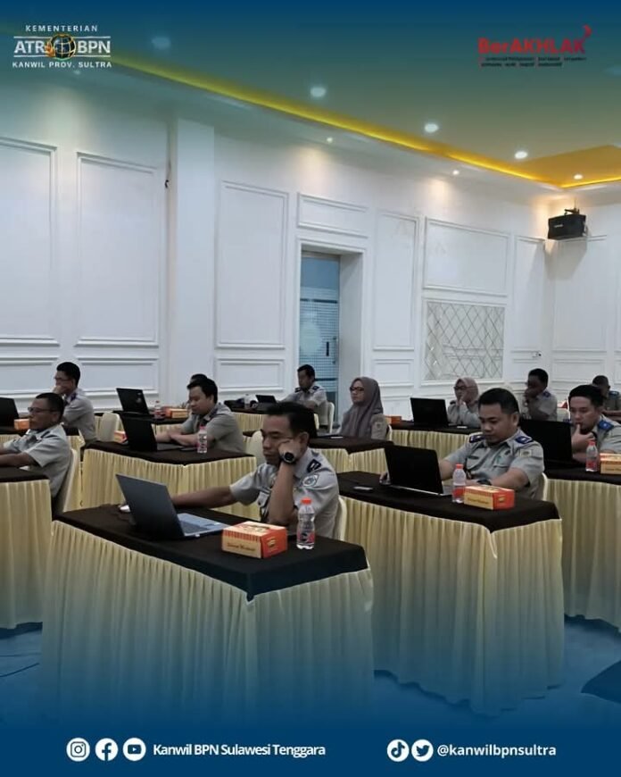 Kegiatan itu diselenggarakan secara virtual melalui platform Zoom Meeting dan diikuti oleh peserta dari berbagai wilayah. Termasuk yang hadir secara luring di Aula Kantor Wilayah BPN Provinsi Sulawesi Tenggara.
