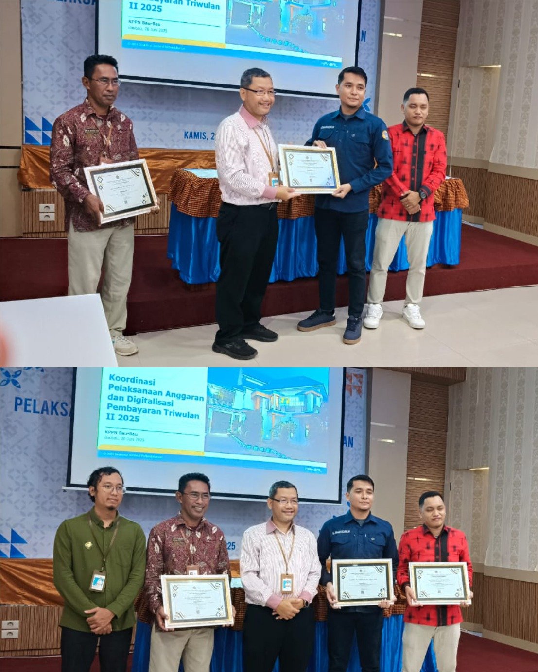 Piagam penghargaan tersebut diserahkan di sela-sela kegiatan Koordinasi Pelaksanaan Anggaran dan Digitalisasi Pembayaran Triwulan II 2025 yang berlangsung di Kantor Pelayanan Perbendaharaan Negara Tipe A2 Bau-Bau.