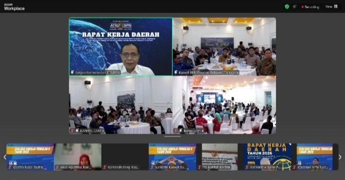Hal itu disampaikan saat membuka Rapat Kerja Daerah (Rakerda) Kantor Wilayah (Kanwil) BPN Provinsi Sulawesi Tenggara, yang berlangsung di Ruang Aula Baruga Bhumi Bhakti, Rabu 16 Juli 2025.