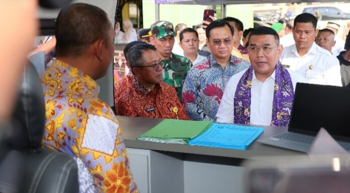 TANGERANG, TRIBUNBUTON.COM – Wakil Menteri Agraria dan Tata Ruang/Badan Pertanahan Nasional (Wamen ATR/BPN), Ossy Dermawan, meninjau Layanan Sertipikat Keliling yang digagas Kantor Pertanahan (Kantah) Kabupaten Tangerang. Rabu 23 Juli 2025.