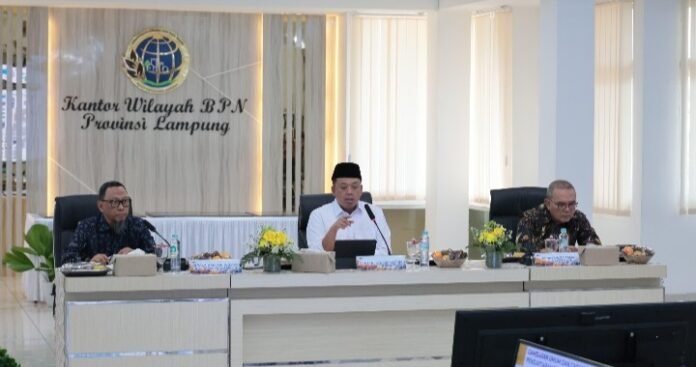 LAMPUNG, TRIBUNBUTON.COM – Menteri Agraria dan Tata Ruang/Badan Pertanahan Nasional (ATR/BPN), Nusron Wahid, menghimbau jajaran Kantor Wilayah BPN Provinsi Lampung untuk mempercepat pelaksanaan Reforma Agraria. Khususnya dalam pemetaan dan pemanfaatan lahan yang belum terdaftar.