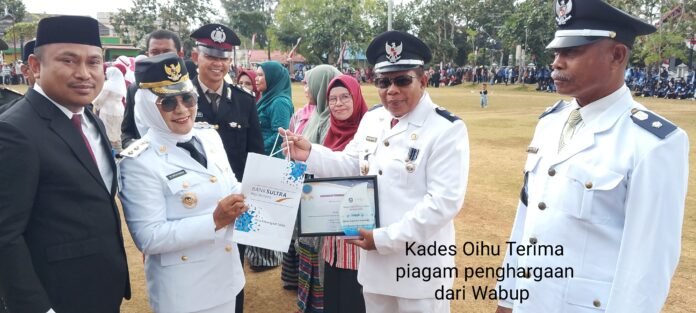 Dengan prestasi itu, Desa Oihu diganjar sejumlah penghargaan diantaranya piagam penghargaan dari Pemerintah dan diserahkan langsung Wakil Bupati Wakatobi, Dra Safia Wualo. Serta hadiah menarik lainnya dari berbagai sponsor.