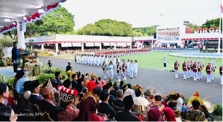 Upacara berlangsung khidmat dengan rangkaian prosesi pengibaran bendera Merah Putih, pembacaan teks Proklamasi, hingga penampilan atraksi seni dan budaya dari berbagai daerah di Indonesia. Dalam kesempatan ini, Menteri Nusron tampil dengan baju adat Melayu dan Wamen Ossy dengan balutan baju adat Betawi.