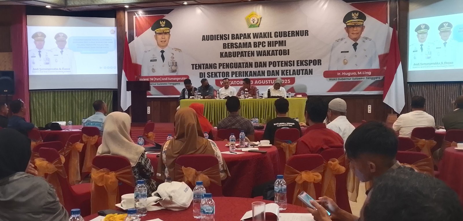 Undangan kegiatan itu bertajuk, Audiensi Wagub Sultra bersama BPC HIPMI Wakatobi. Tentang penguatan potensi ekspor di sektor perikanan dan kelautan. Dan dihadiri Wakil Bupati Wakatobi, perwakilan instansi terkait dan sejumlah perwakilan komunitas nelayan serta pengusaha nelayan di Wakatobi.