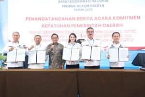 Pada kesempatan itu juga dilakukan Penandatanganan Komitmen Kepatuhan Pemerintah Daerah dalam Mendukung Kebijakan Strategis Nasional untuk Mewujudkan Asta Cita, Peningkatan Investasi, dan Tata Kelola Produk Hukum Daerah yang Berkualitas.
