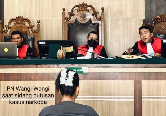 WAKATOBI, TRIBUNBUTON.COM – Pengadilan Negeri (PN) Wangi-Wangi, Kabupaten Wakatobi Sulawesi Tenggara (Sultra) menjatuhkan vonis pidana penjara dua (2) tahun dan denda Rp 800 juta, subsider enam (6) bulan kurungan kepada terdakwa Hartati Ode Alias Tati Binti La Ode Kosea dalam perkara Narkotika Nomor 17/Pid.Sus/2025/PN Wgw.