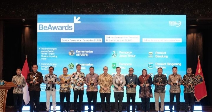 JAKARTA, TRIBUNBUTON.COM – Kementerian Agraria dan Tata Ruang/Badan Pertanahan Nasional (ATR/BPN) meraih penghargaan dalam ajang Be Award untuk “Instansi dengan Pemanfaatan Tanda Tangan Elektronik Paling Masif” Kategori Sektor Pemerintah Pusat dan BUMN.