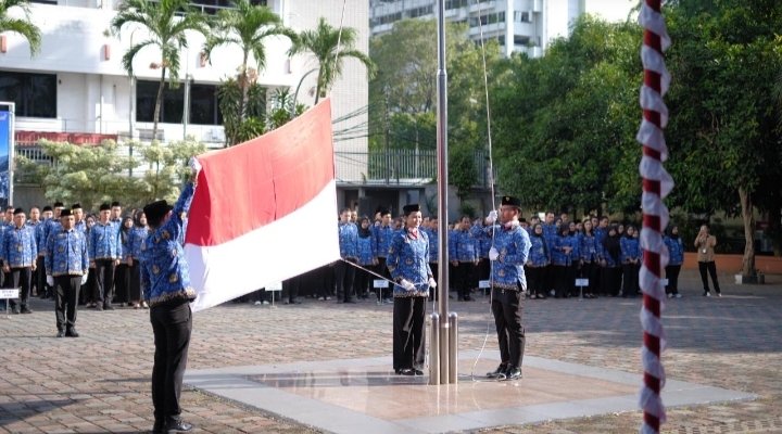 JAKARTA, TRIBUNBUTON.COM – Kementerian Agraria dan Tata Ruang/Badan Pertanahan Nasional (ATR/BPN) menggelar Upacara Peringatan Hari Ulang Tahun (HUT) ke-54 Korps Pegawai Republik Indonesia (KORPRI). Direktur Jenderal Penetapan Hak dan Pendaftaran Tanah (PHPT), Asnaedi, bertindak selalu inspektur upacara. Menyampaikan amanat Ketua Umum Dewan Pengurus Korpri Nasional, Zudan Arif Fakrulloh terkait peran ASN dalam mendorong perubahan birokrasi.