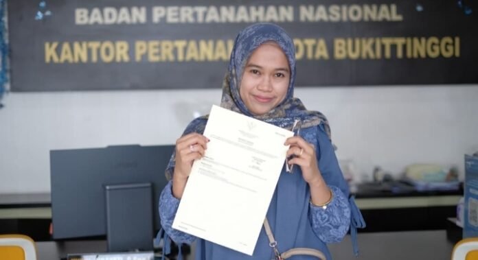 BUKIT TINGGI, TRIBUNBUTON.COM – Penerapan Sertipikat Elektronik memberikan rasa aman dan ketenangan bagi masyarakat, khususnya di tengah musim penghujan yang rawan terjadi bencana. Hal tersebut dirasakan langsung oleh pemohon layanan pertanahan di Kota Bukittinggi yang kini tidak lagi khawatir terhadap risiko kerusakan atau kehilangan dokumen fisik sertipikat tanahnya.